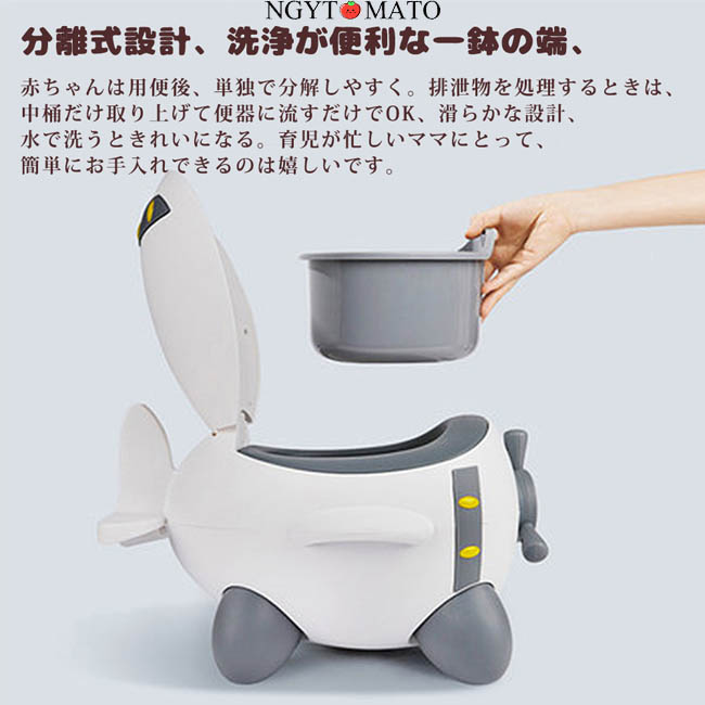 分離式設計、洗浄が便利な一鉢の端、赤ちゃんは用便後、単独で分解しやすく。排泄物を処理するときは、中桶だけ取り上げて便器に流すだけでOK、滑らかな設計、水で洗うときれいになる。育児が忙しいママにとって、簡単にお手入れできるのは嬉しいです。