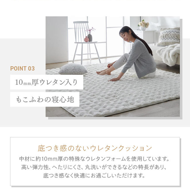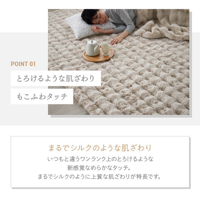 ・ふんわり滑らかな触り心地で気持ちいいボリューム感のラグ。