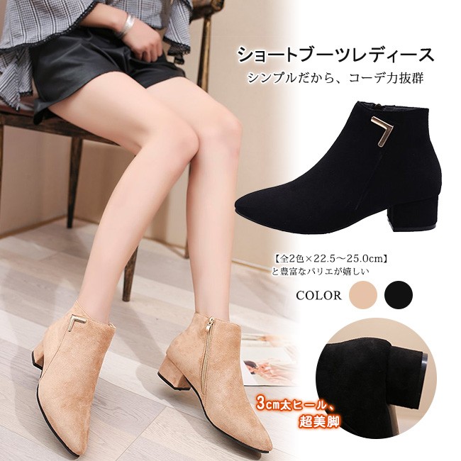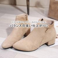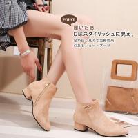 ショートブーツ レディース スクエアヒール ショート丈 ポインテッドトゥ ブーティ シンプル 無地 スエード調 履きやすい おしゃれ 通学 通勤 大きい