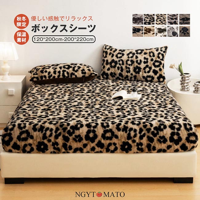 ボックスシーツ ミルクフランネル 床笠タイプ もこもこ ふわふわ あったか 吸湿発熱 洗える 静電気防止 柔らかい ヒョウ柄 保温 シングル/セミダブル/ダブル