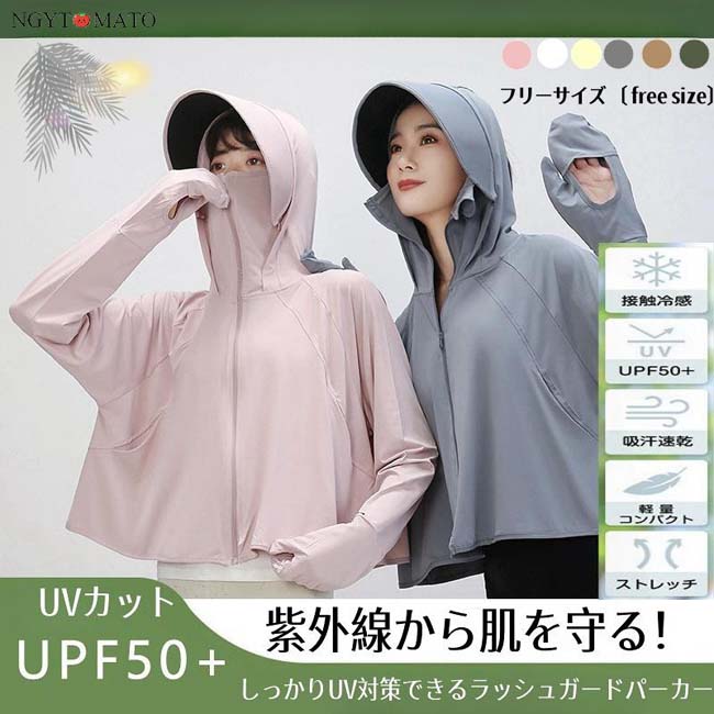 ラッシュガード ラッシュパーカー UVカット レディース 吸水速乾 冷感 夏 冷房対策 日焼け防止服 長袖 紫外線対策 光老化対策 UPF50+
