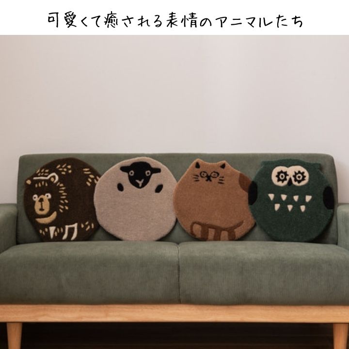 可愛くて癒される表情のアニマルたちがモチーフのシートクッション。
