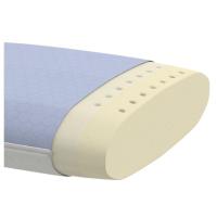 このエルゴノミクス枕は、片面にラミネートされたハニカム模様の布地を使用。