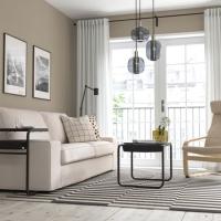 やや高めのサイドテーブルから低めのコーヒーテーブルにすばやく形を変えられるので、