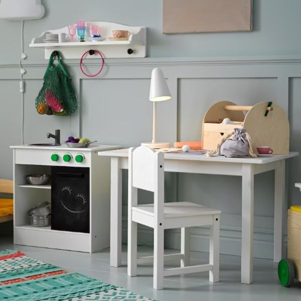 サイズの小さい家具を使うと、居心地のよい遊び場を簡単につくれます。