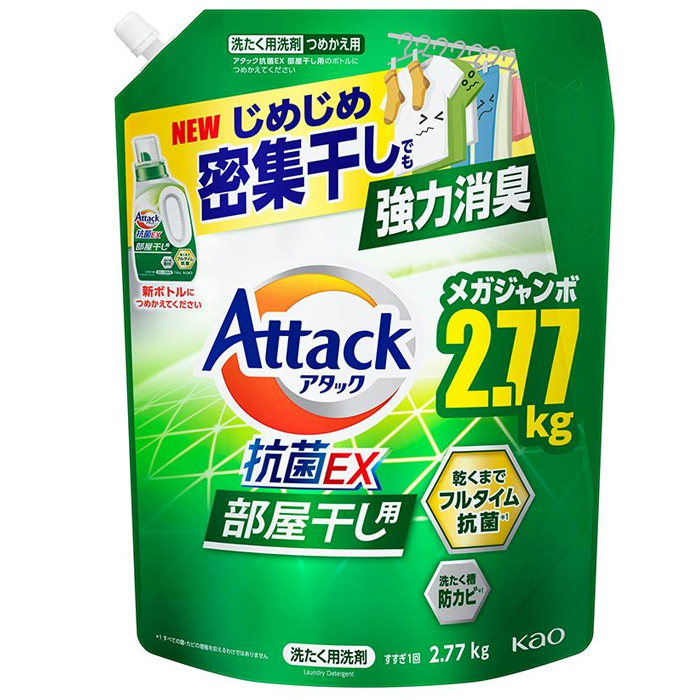<数量限定!>アタック 抗菌EX 部屋干し つめかえ用 2770g 洗濯用洗剤 花王