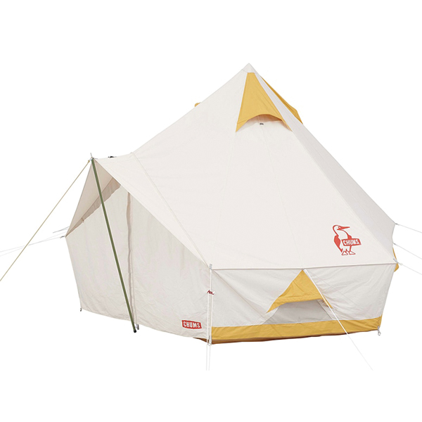 T/C素材(ポリエステル・コットン)を使用したお洒落なベル型テント。中央のポールをメインに立てて張るだけのシンプルな構造で、大きなテントながら簡単に設営可能。サイド部分が立ち上がっているので隅々までスペースを有効活用でき、高さもあるので、大人の方でもテント内で快適に過ごせます。