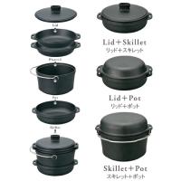 ・ セット内容:リッド×1、スキレット×1、ポット×1、プレート×2、ハンドル×2、収納ケース