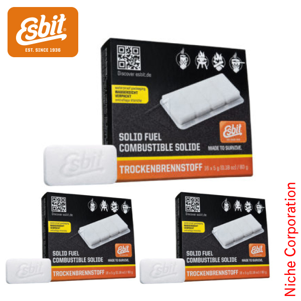 エスビット 固形燃料 5g x16個入り 3箱セット Esbit 国内正規品 ES00101600 キャンプ アウトドア 登山 山登り トレッキング ソロキャンプ