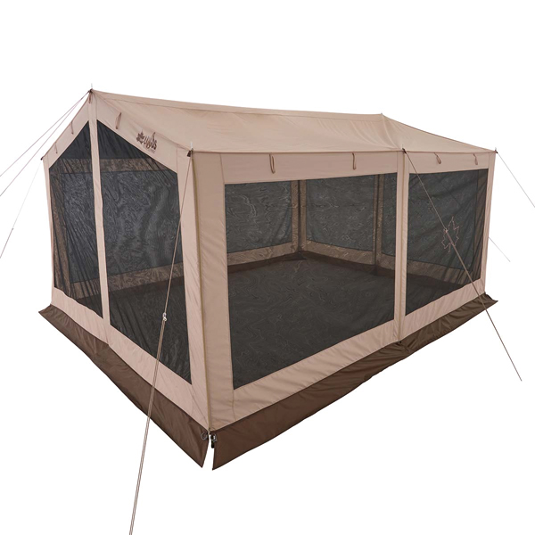 通常比の約1.5倍のUV-CUT率・遮光率を実現したLOGOS独自開発の高機能メッシュ。 紫外線や強い日差し、虫の侵入を防ぎながら、テント内部に心地よい風だけを通します。