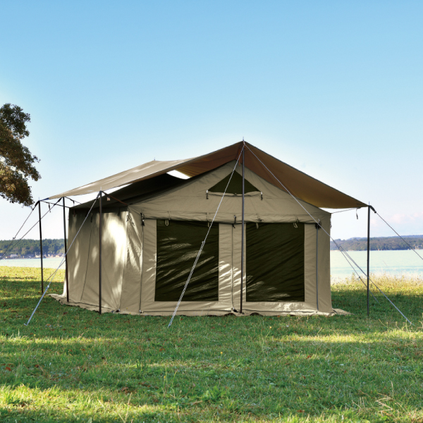▼REVOスクエアタープ 3×3 TC/TAN専用設計のメッシュウォールでシェルター仕様へ