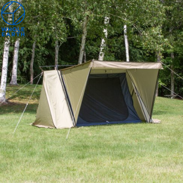 キャノピー時に開閉可能なサイドウォール機能で、出入り口の部分を跳ね上げたキャノピー時に側面を覆えることで人目を気にすることなくソロキャンプを楽しめます。