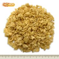 | 水戻し方法 | ソフトタイプ…低密度で、肉のような柔らかい食感。 例)ハンバーグ、チキンナゲット等 ・水で10分程度吸水させ、水切りを行ってください。 *水戻しすると、約3倍になります。 〔例〕お肉分量で150g必要な場合→湯戻し量目安50g(※戻し方、水の切り方によって多少異なります) |