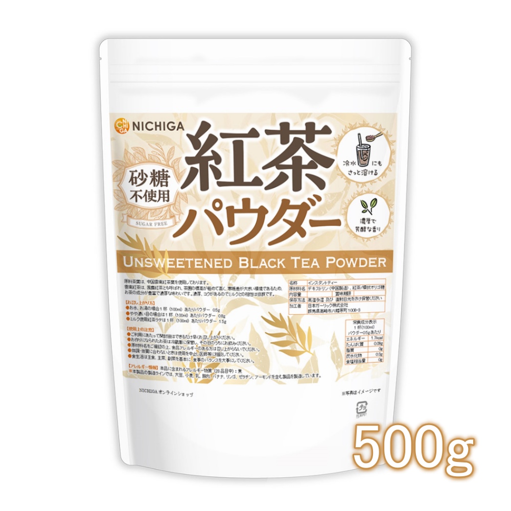 | お召し上がり方 | お水・お湯の場合、1杯(100ml)あたりパウダー0.5g やや濃い目の場合は、1杯(100ml)あたりパウダー0.8g ミルク使用紅茶ラテは、1杯(100ml)あたりパウダー1.5g |