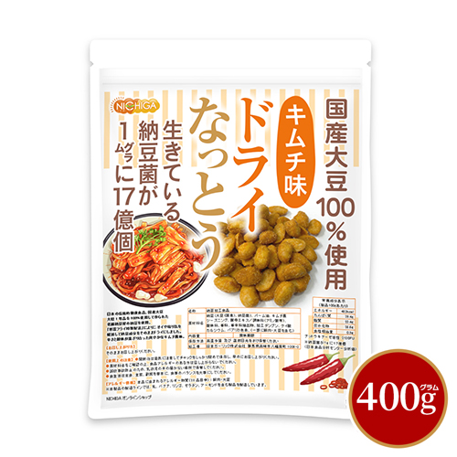 | 原材料名 | 納豆(大豆(国産)、納豆菌)、パーム油、キムチ風シーズニング、酵母エキス/調味料(アミノ酸等)、酸味料、香料、香辛料抽出物、加工デンプン、ケイ酸カルシウム、パプリカ色素、(一部に豚肉・大豆を含む) |