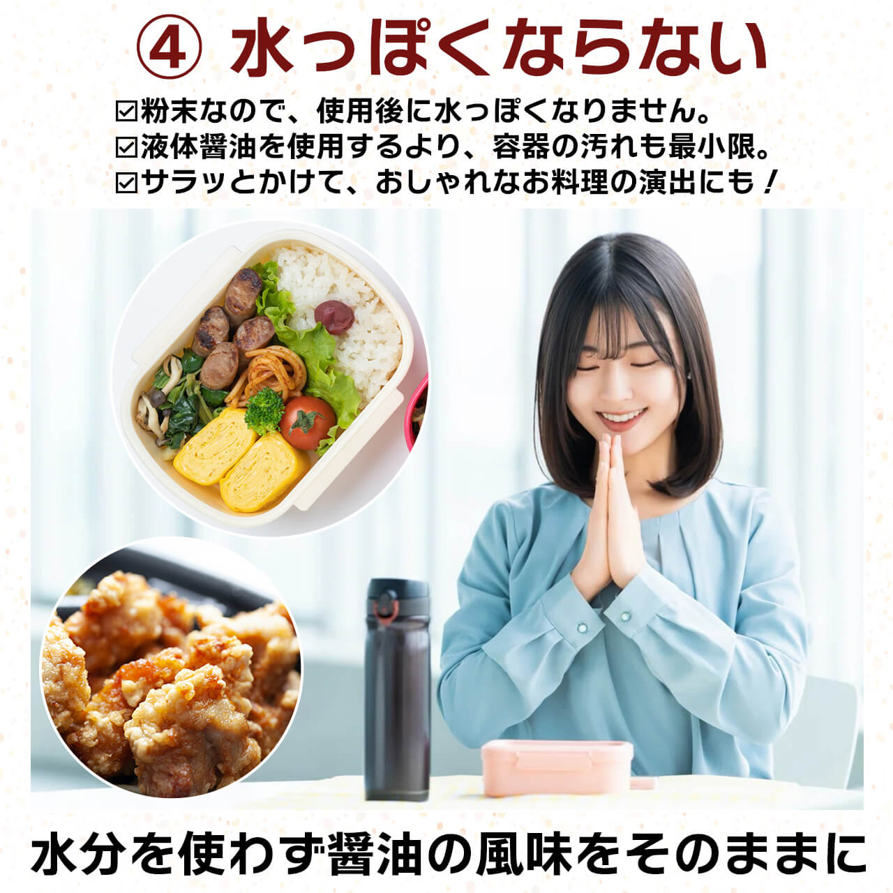 | 原材料名 | 粉末醤油(醤油、デキストリン、食塩)、(一部に小麦・大豆を含む) |