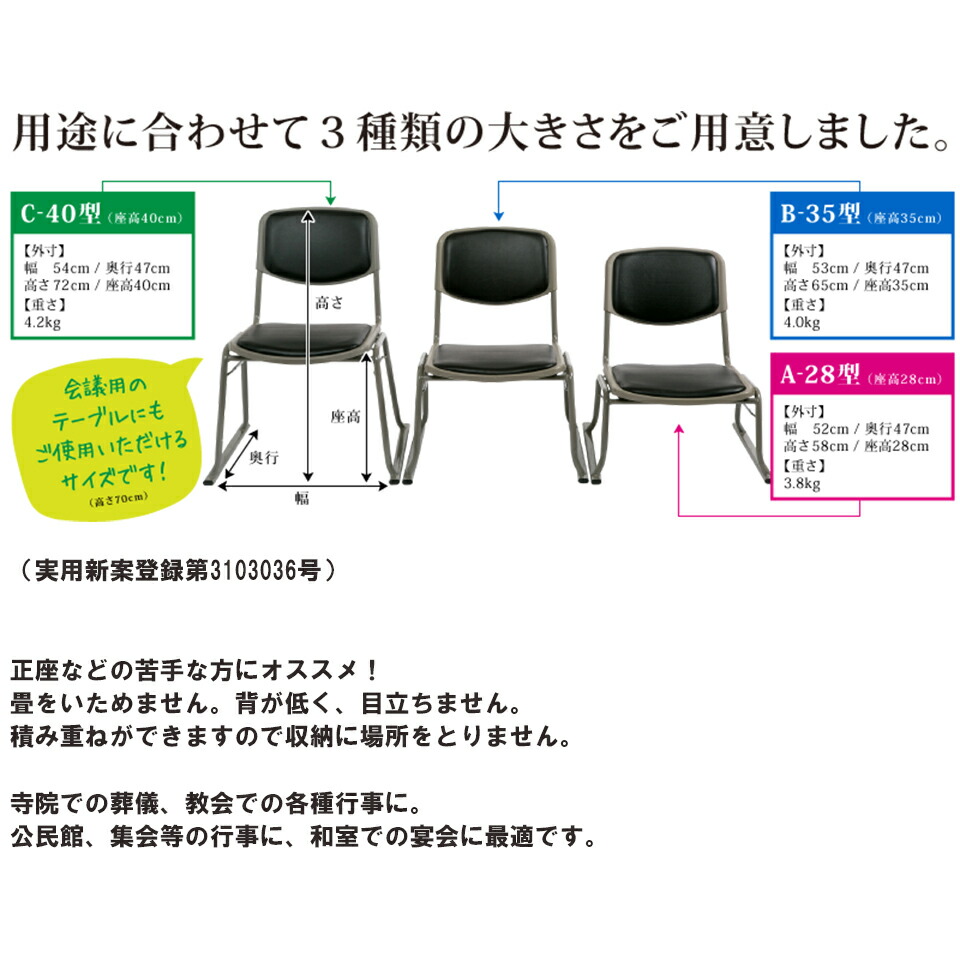 【4脚組】 お座敷チェアー お座敷椅子 和室 畳 畳用椅子 いす お寺 寺院 集会場 集落所 公民館 葬儀場 教会 B-35型 35cm 送料無料