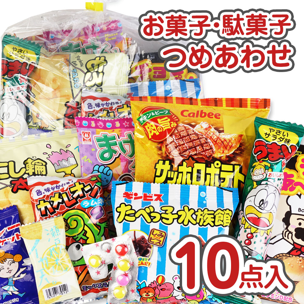 ブルボン チョコあーんぱん・まけんグミ・カルビー サッポロポテト BBQ・たべっこ水族館・うまい棒・カメレオンラムネ・もろこし輪太郎・ウイットナンバー・イカ天レモン・ミレービスケット