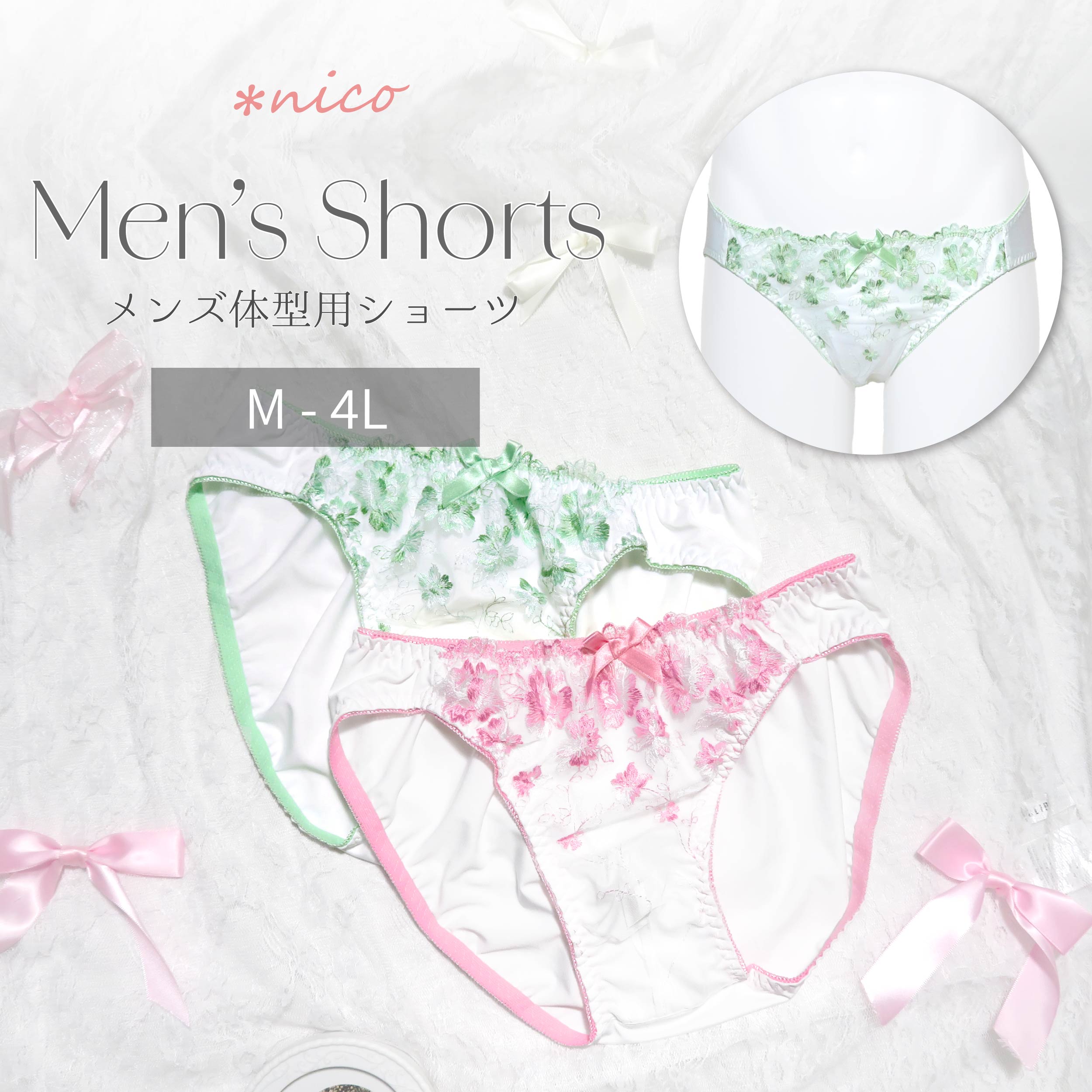 乙女のような可愛さがぎゅっと詰まったメンズ体型用ショーツ。