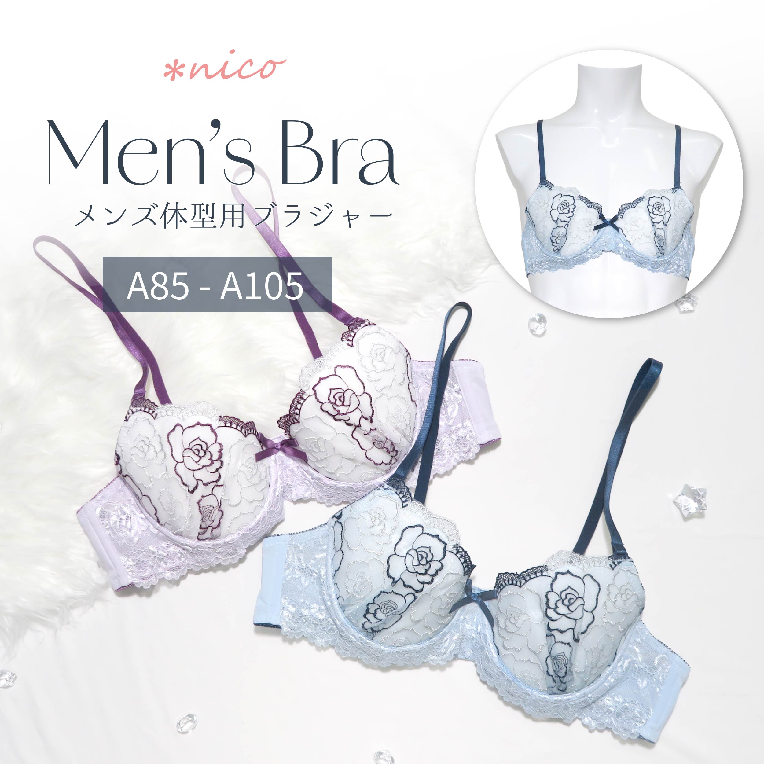 ローズ刺繍が上品に咲き誇り、胸元を美しく魅せてくれるメンズ体型用ブラジャー。