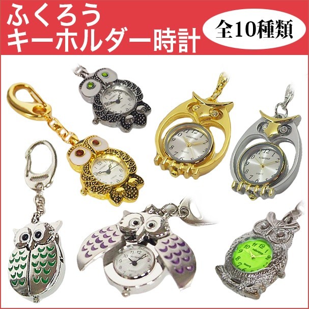 mbb709送料無料ポイント消化ふくろう時計キーホルダー時計バックチャームフクロウキーホルダーウォッチ時計梟デザイン小さい可愛いおしゃれ