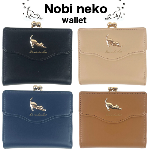 伸び猫2つ折りがま口財布