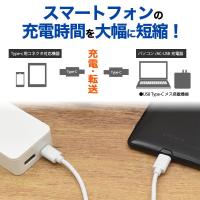 USB PD対応のスマートフォン(Type-Cポート搭載)への、18W超急速充電を可能にします。