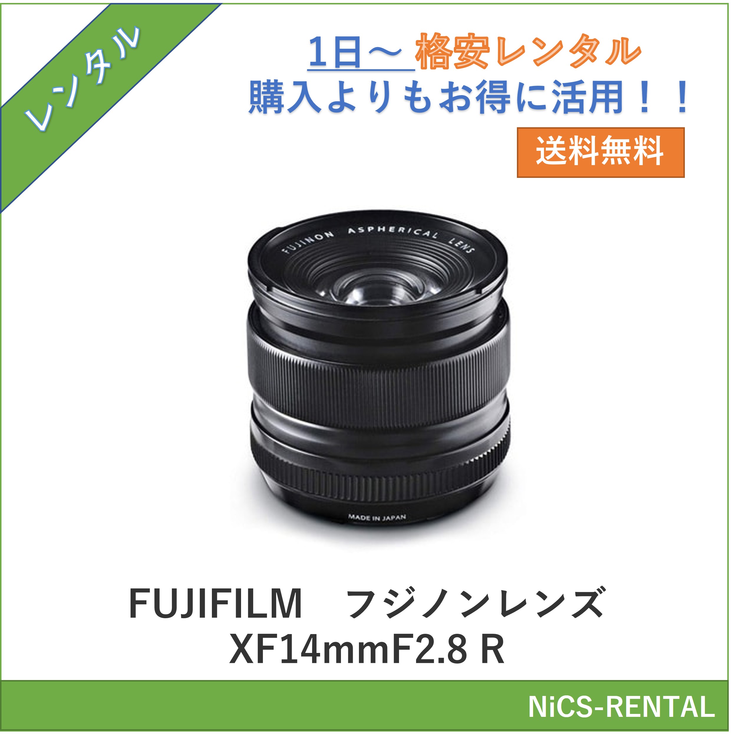 【往復送料無料】フジノンレンズ XF14mmF2.8 R FUJIFILM レンズ デジタル一眼レフカメラ 1日〜 レンタル 送料無料