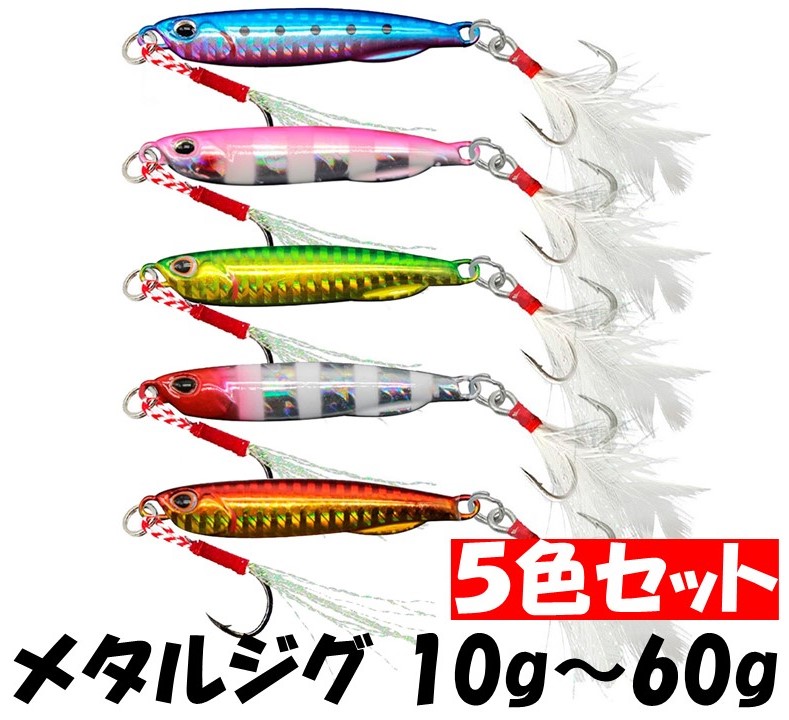 釣具ルアー ぶっ飛びメタルジグ 5色 ルアーセット 強化フック搭載 青物 タチウオ サワラ シーバス ヒラメ マゴチ マグロ カツオ