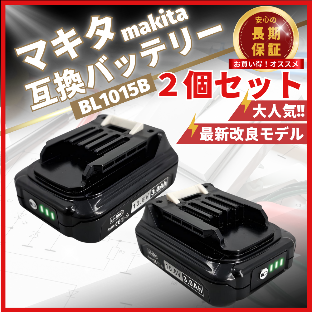マキタ 互換品 バッテリー BL1015 10.8v 3.0Ah 掃除機 LED残量表示 純正充電器対応 PSE認証 日本企業 10億円PL保険 1年保証 (BL1015/2個)