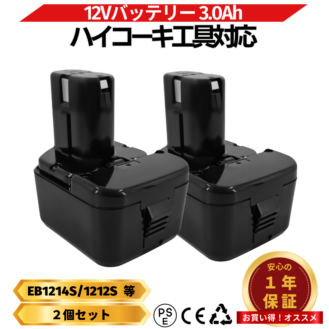 ハイコーキ 互換品 バッテリー EB1214S 12V 3.0Ah EB1212S EB1214L EB1220BL EB1230HL EB1230R EB1230X 対応 日立工機 (EB1214S 3.0Ah/2個)