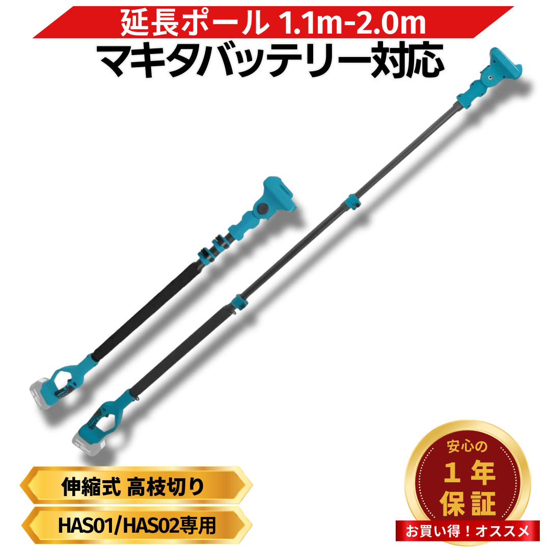 マキタ 互換品 延長ポール 1.1m-2.0m 伸縮式 高枝切り 電動ハサミ 対応 18V バッテリー対応 角度調節 肩掛けベルト付き 軽量1.4kg (EXPL2001-BL)