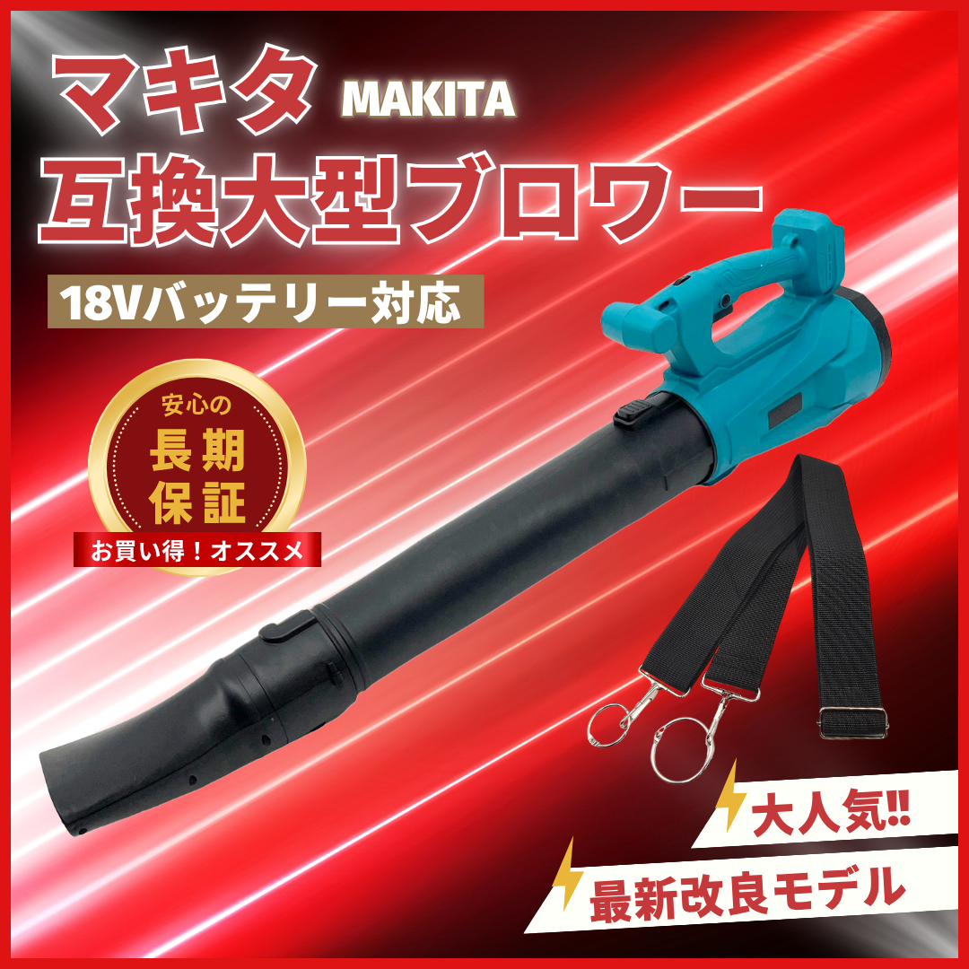 マキタ 互換品 ブロワー 充電式 ブロアー ハイパワー 超強力 洗車 肩掛け コードレス ブロワ 集塵 落ち葉 ブロア 18V バッテリー 対応 (HYBLO01-BL)