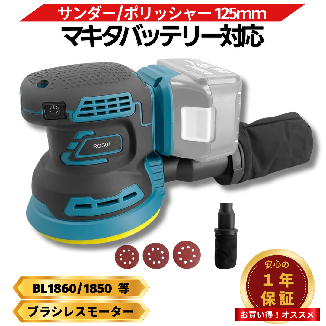 マキタ 互換品 ランダム サンダー 充電式 プロ仕様 集塵機能 ブラシレスモーター ダストシステム 125mm コードレス 研磨 (ROS01-BL)
