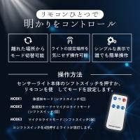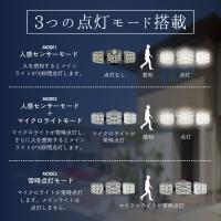 (1)人体感知モード:人感センサーが検知すると強い光で点灯しセンサーから離れると消灯します