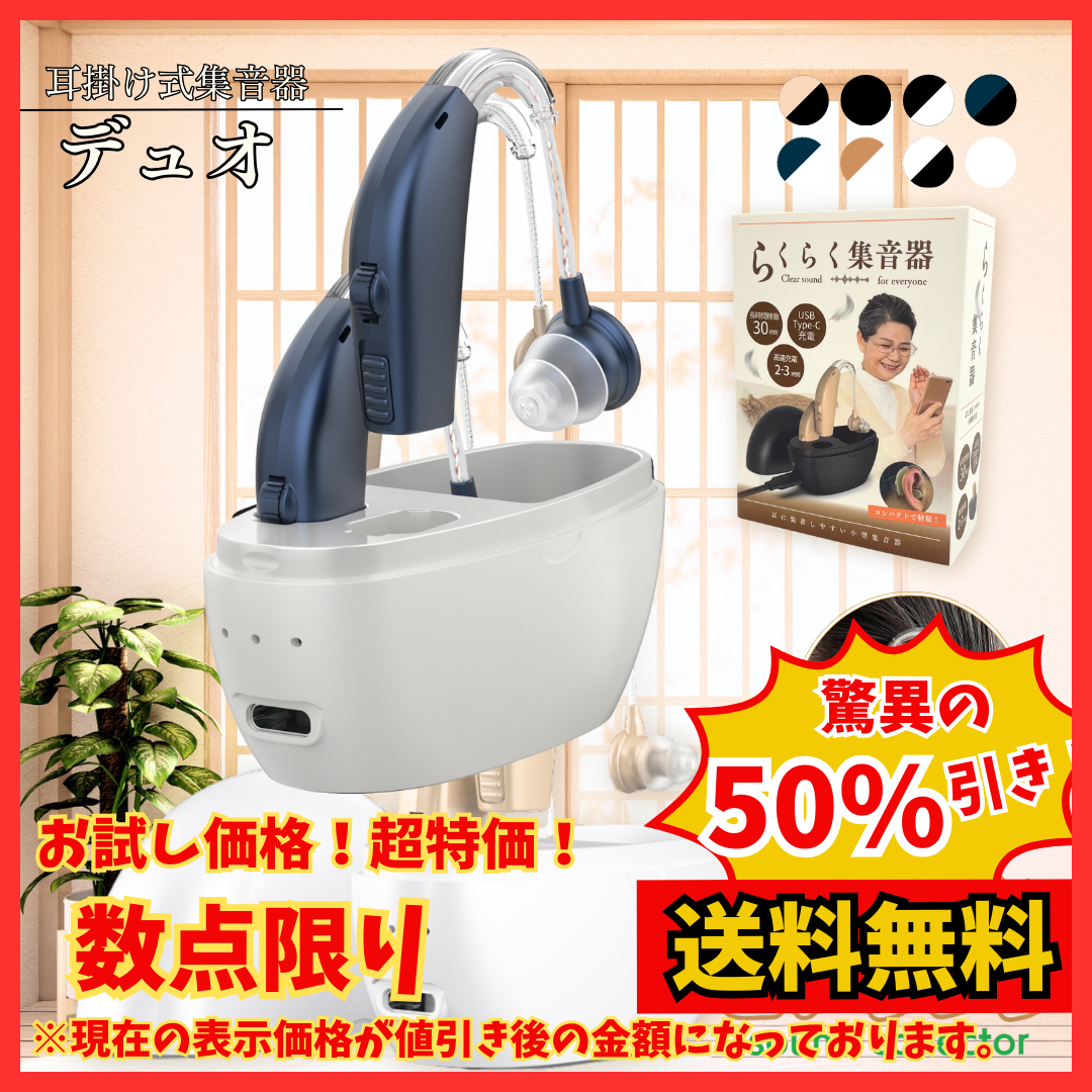 国内正規品 らくらく 集音器 カラー限定 高齢者 耳穴式 おすすめ 高品質 簡単操作 軽量 充電式 左右両用耳掛けタイプ かんたん ワイヤレス ( 0100BG 両耳用 )
