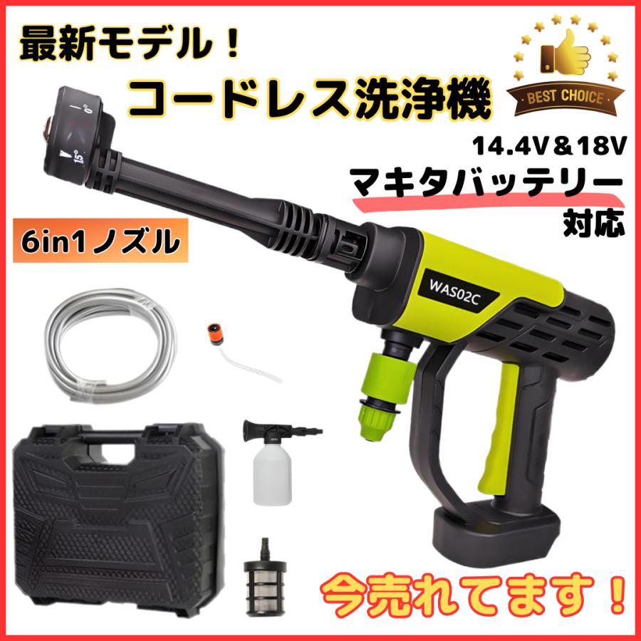 マキタ 互換品 高圧洗浄機 コードレス 充電式 5.0MPa 6in1 50℃対応 軽量 1.5kg 収納ケース付 フォームガン 標準装備 マキタ18V/14.4V対応 (WAS02C-GR)