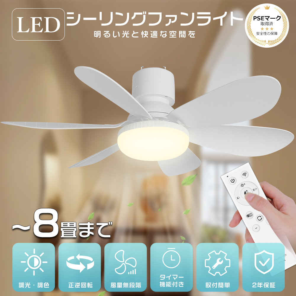 ファン付きシーリングライト 小型 4畳 6畳 8畳 17W 3400lm シーリングファンライト ファン付き照明 リモコン付き 天井扇風機 DCモーター 静音 調光調色 空気循環