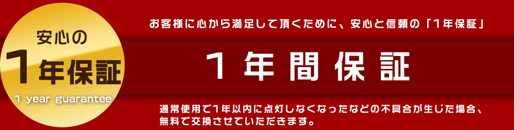 | 出荷日から1年間で何か故障が御座いましたら、無料で修理や交換をさせていただきます。 |