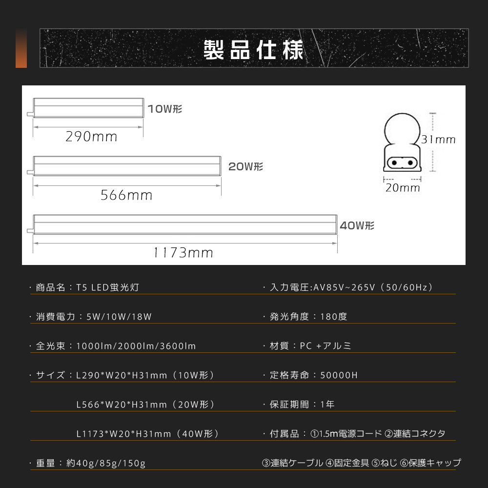 | 商品名 | LED蛍光灯 T5【10W形/20W形/40W形】 |