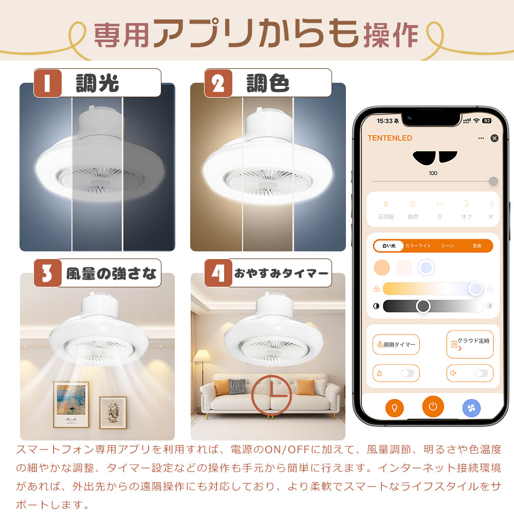 3.リモコン付き、省エネなLED搭載、無階段調光調色