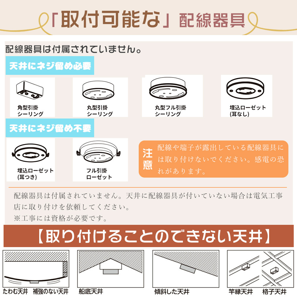 本製品は【工事不要】の「引掛けシーリングタイプ」と「E26口金タイプ」の2種類から選べます。ご自宅の取付け口に合わせて、簡単に取り付け可能です。