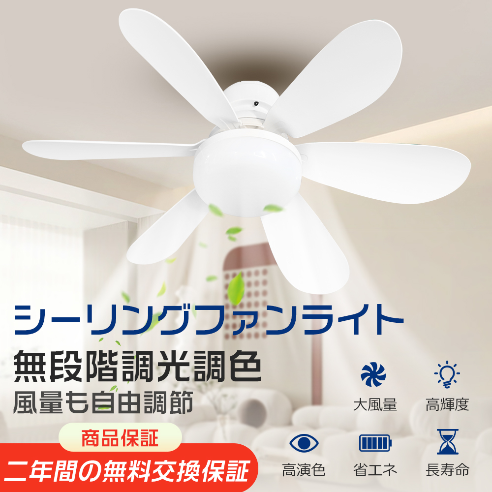 | おすすめ ポイント Points | 1.スマホ遠隔操作 本製品はスマホで遠隔操作することが可能で、WIFI接続ならばどこでも照明や風量が調節できます。帰宅前に部屋の換気や照明を付ければ、帰って直接に快適なお部屋で休めます。 2.調光・調色機能 本製品は無階段調光・調色することができ、環境や雰囲気に合わせて明るさと色温度を調整できます。リラックスしたい時に柔らかな暖色光に低照度で気持ちを落ち着き、作業や読書する場合は鮮明な白色光と明るい高照度で集中力を向上します。 3.空間利用率向上 照明器具と扇風機が一体化しているため、別々に設置する必要がなく、スペースを有効活用できます。特に小さい部屋や天井の低い部屋に設置すると、部屋が大きくなったように感じます。 4.優れた省エネ性 本製品は高光効なLEDチップを実装することで、業界高水準となる200lm/wの高発光効率に達しました。従来の蛍光灯より半分の電力代を節約できます。それにファン部は夏にエアコンと併用することで、冷気を循環させ、部屋を効率的に冷却できます。 5.年間使用可能 本製品のファン部は正逆両方向の回転機能を備えているため、需要に応じて風の向きを調整できます。夏は下に風を吹くことで、直風で涼しくなる同時に、冷房と合わせて冷気を部屋全体に届けられます。冬は上に風を吹くことで、天井に積もる暖房の熱気を動かして、部屋全体を暖かくするができます。本製品一台で季節を問わず快適な空間を作られます。 6.幅広い適用環境 本製品は家庭照明用も商業照明用もできるLED照明器具です。廊下、キッチン、オフィス、ガレージ、ホテル、営業ホール、スーパー、レストラン、店舗、倉庫、事務所など、様々なシーンに適用しています。 7.安心の二年保証 弊社はお客様にご満足いただける品質・サービスのご提供することに努めております。万が一製品の部品や構造に欠陥があった場合は、お気軽にカスタマサポートにお問い合わせください。24時間以内に迅速なご対応をさせていただきます。 |