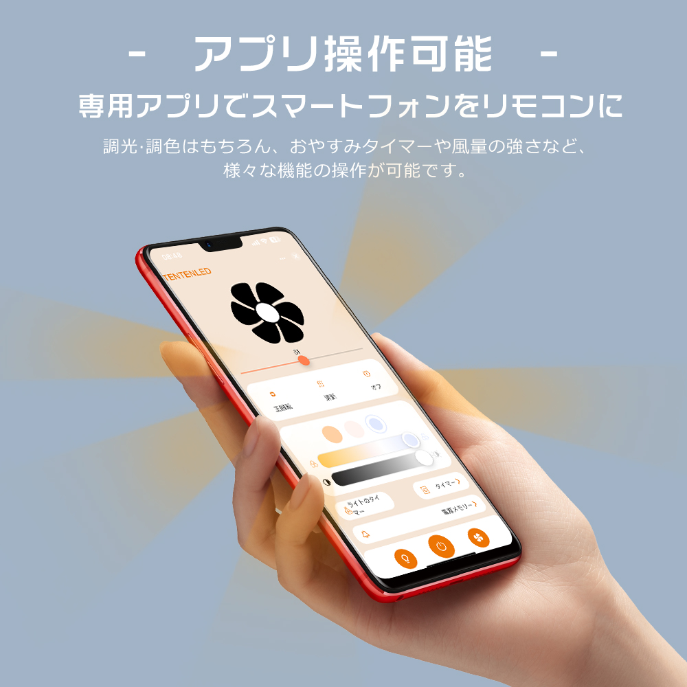 本製品はスマホで遠隔操作することが可能で、WIFI接続ならばどこでも照明や風量が調節できます。帰宅前に部屋の換気や照明を付ければ、帰って直接に快適なお部屋で休めます。