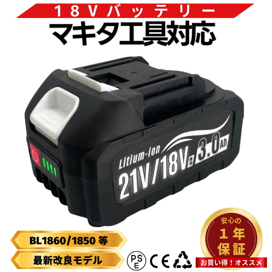 マキタ 互換 バッテリー 18V 21V 兼用 3000mAh PSE認証済み 充電式 LED電池残量表示 DIY 園芸 小型 軽量 ※充電器別売り (AB1830B/1個)