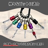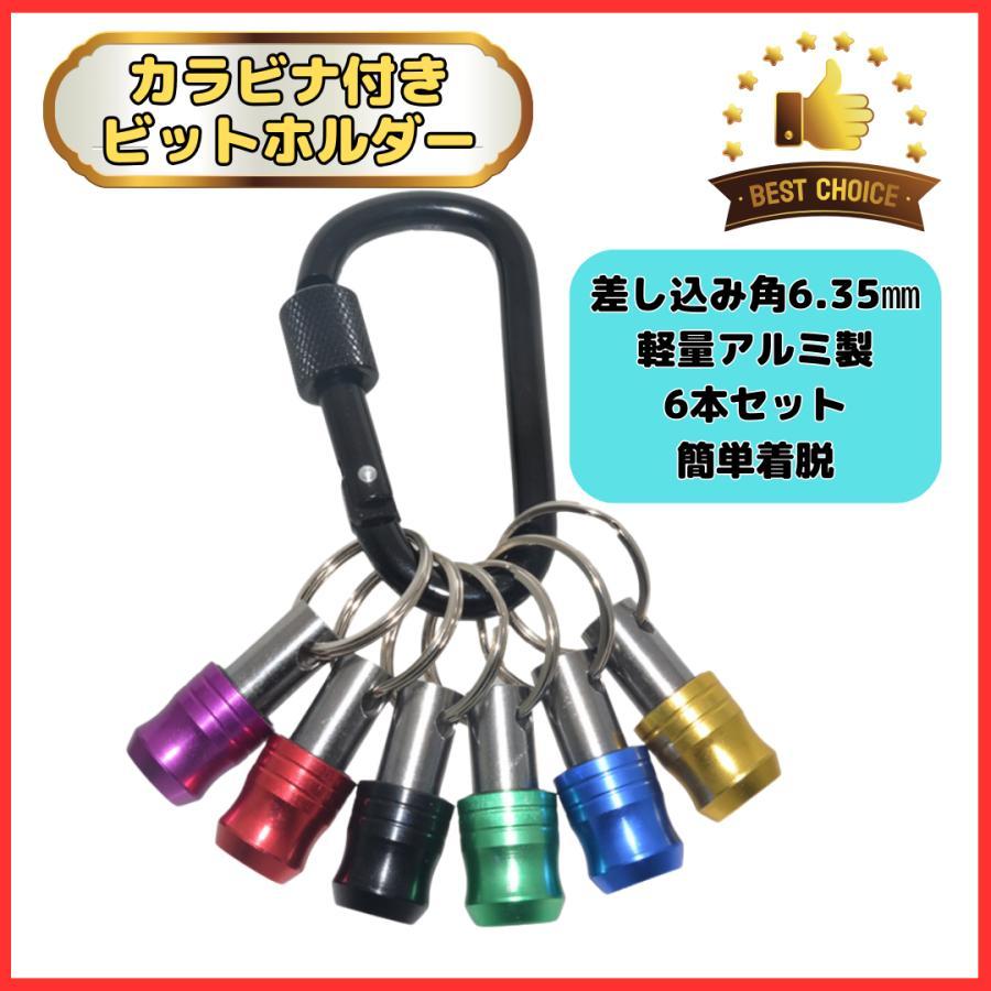 6色 ビットホルダーセット アルミ製 カラビナ付 腰袋装着可 引き上げ式 6.35mm ドライバーソケット ビットケース ソケットホルダー キーホルダー 収納 (BHS01)
