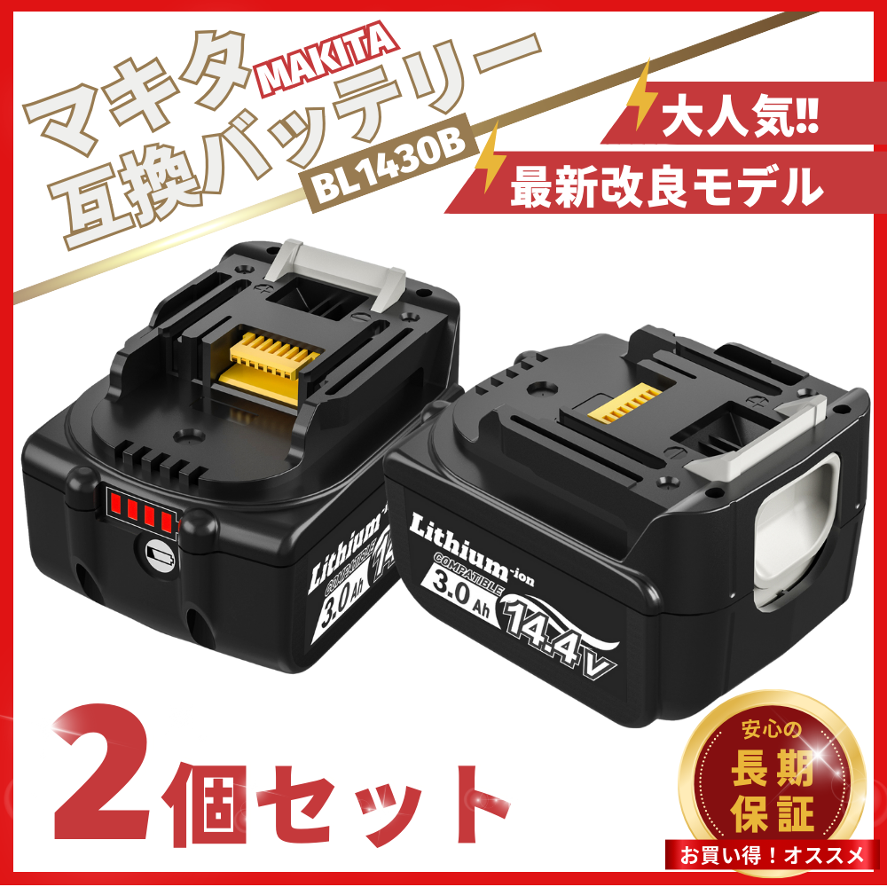 マキタ 互換品 makita バッテリー BL1430B 14.4V 3.0Ah ハイパワー 電動工具 工具 BL1420 BL1420B BL1430 BL1450 BL1450B BL1460 BL1460B 対応 (BL1430B/2個)