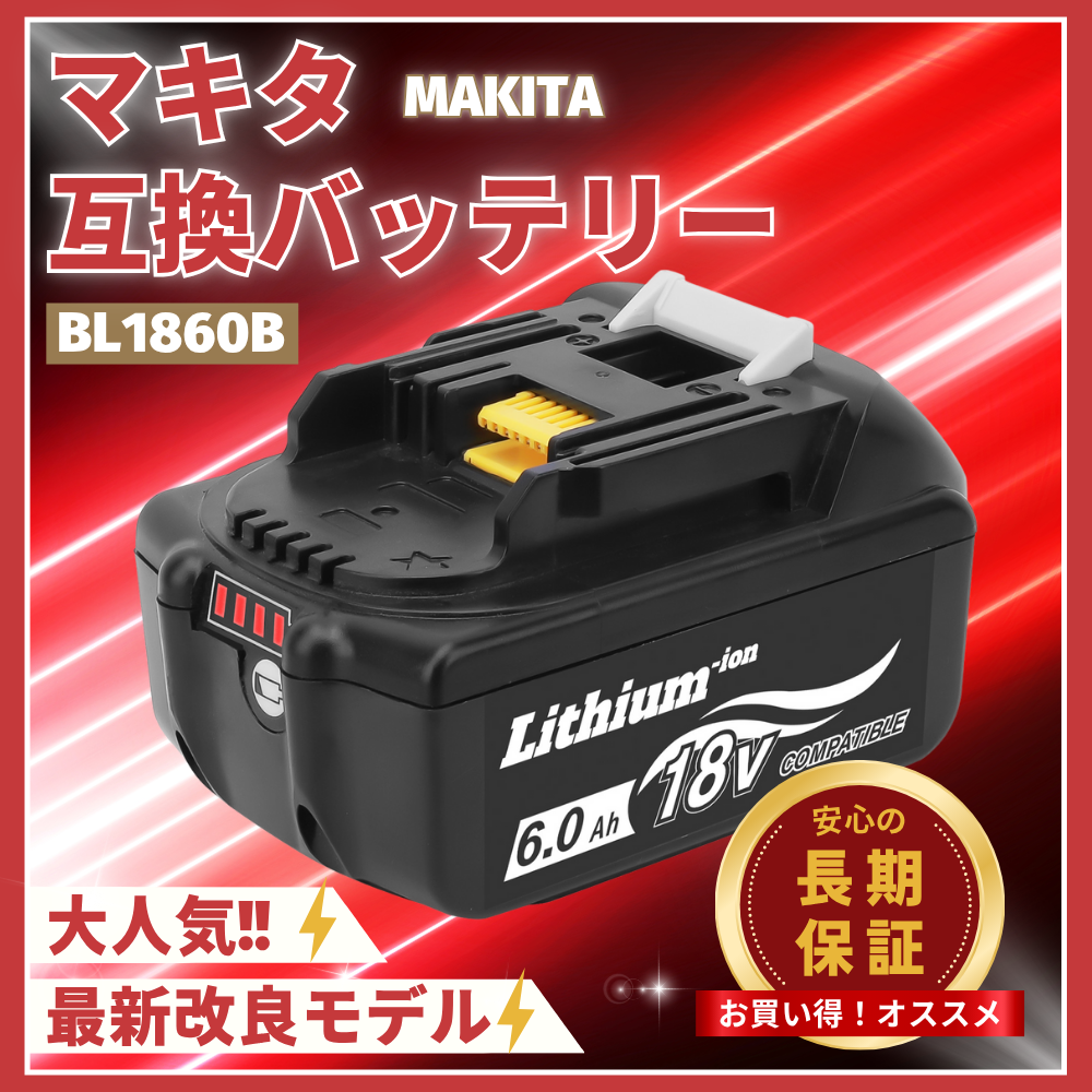 マキタ 互換 18V バッテリー BL1860B 6.0Ah マキタバッテリー 18V 残量表示 最新 長寿命 セル 高性能 保護回路 PL保険 長期保証 (BL1860B/1個)