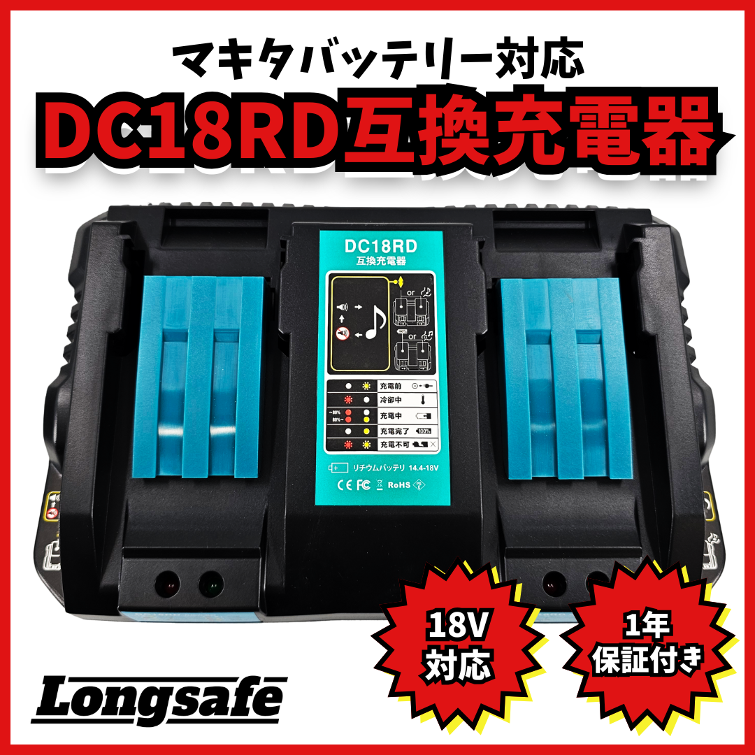 マキタ 互換品 makita DC18RD 2口 急速充電器 充電器 14.4v 18v 充電式 バッテリー 用 DC18RC DC18RF DC18RA DC18SD BL1860B BL1460B 等対応 (DC18RD/1個)