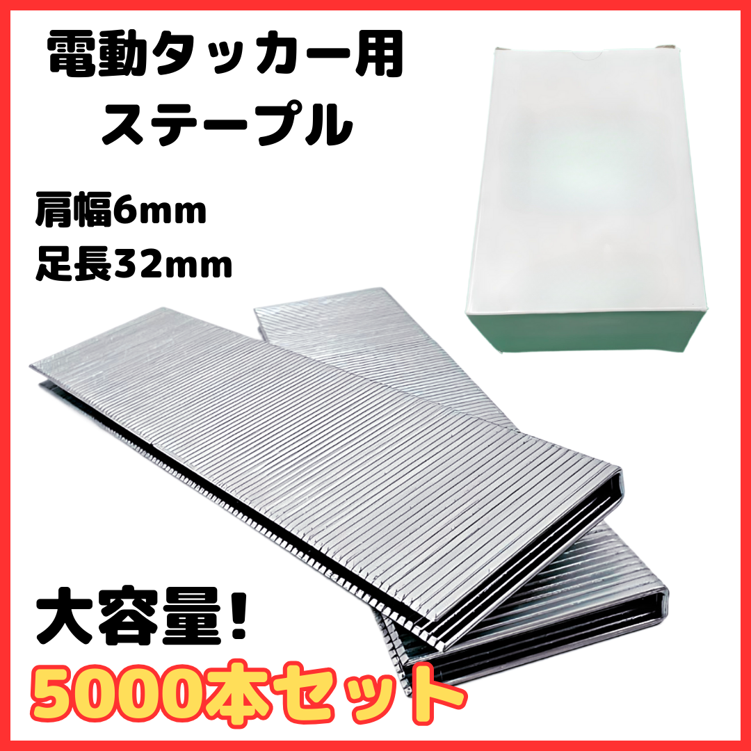 電動タッカー用 ステープル 肩幅6mm 足長32mm 5000本入り ガンタッカー エアータッカー フィニッシュ ネイラー 針 DIY 工具 (ST0132)